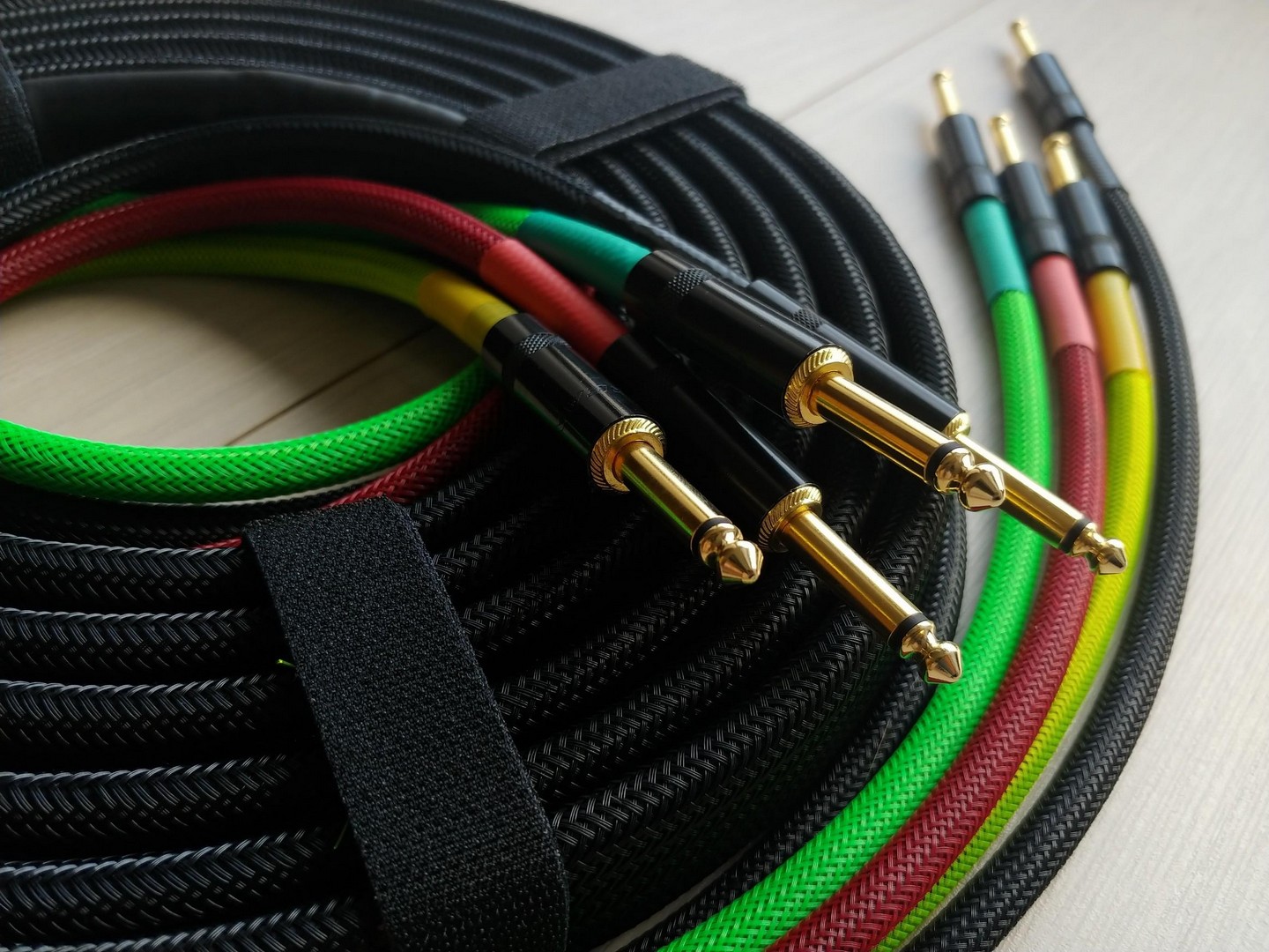 Przewody gitarowe, mikrofonowe, sygnałowe oraz wszelkie inne według upodobań, przedłużacze na scenę i do studia, 1 fazowe, 3 fazowe, oploty pet w kolorach....